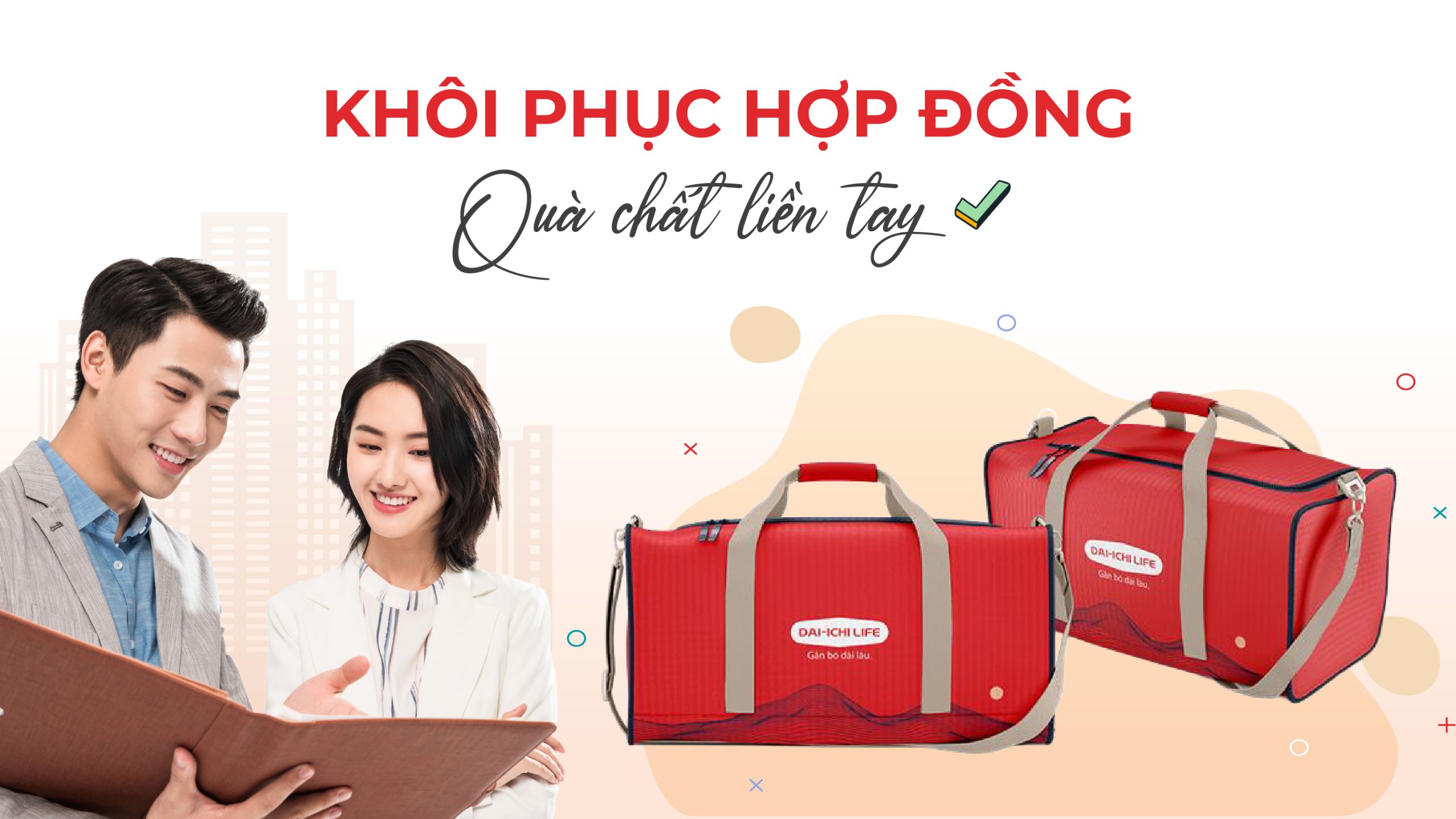 Nhằm bảo vệ tài chính, tích lũy tiết kiệm, giúp Quý Khách có một khoản tiền trang trải chi phí, giảm thiểu gánh nặng tài chính cho bản thân và gia đình trước những rủi ro trong cuộc sống đầy bộn bề và lo toan, Công ty Dai-ichi Life Việt Nam (“Công ty”) trân trọng mang đến Quý Khách Chương trình Khôi phục hiệu lực hợp đồng bảo hiểm (“Chương trình”), theo đó Quý Khách là Bên mua bảo hiểm được chọn lọc nhận thông tin Chương trình qua ứng dụng Zalo và Dai-ichi Connect.
